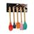 5 PARÇA AHŞAP SAPLI BÜYÜK RENKLİ SİLİKON MUTFAK SET FIRÇA - KAŞIK - SERVİS K. - SPATULA - KARIŞTIRICI