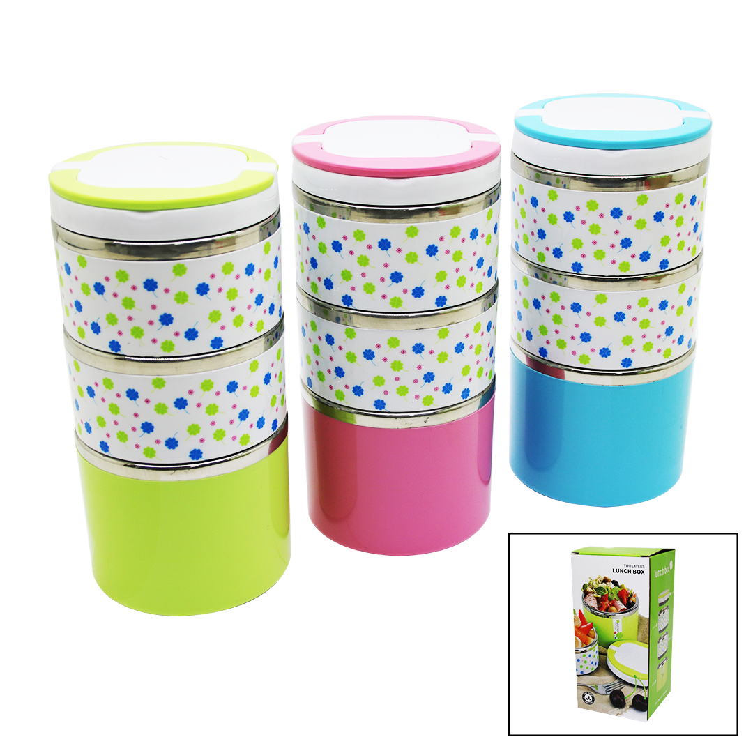 ÇİÇEKLİ 3LÜ SEFER TASI - SAKLAMA KABI RENKLİ 1.26LT (5293)