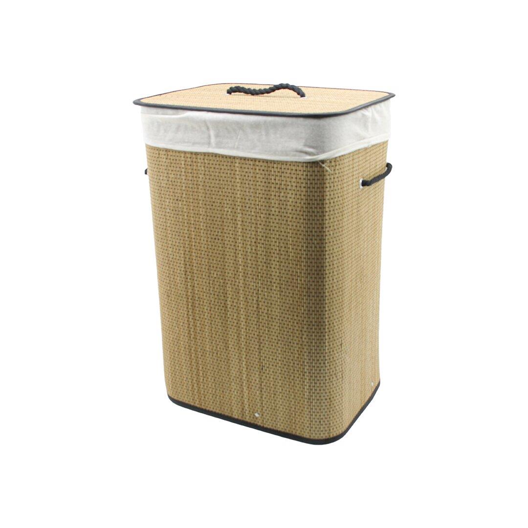 DİKDÖRTGEN HASIR - AHŞAP KİRLİ ÇAMAŞIR SEPETİ 42X32X60CM SEYYAR KAPAKLI İÇİ BEZLİ İP KULPLU (5293)