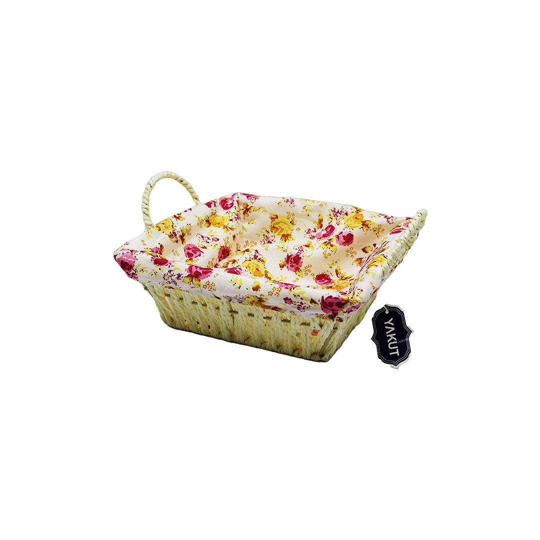 KARE RENKLİ BEZLİ HASIR EKMEK SEPETİ (5293)