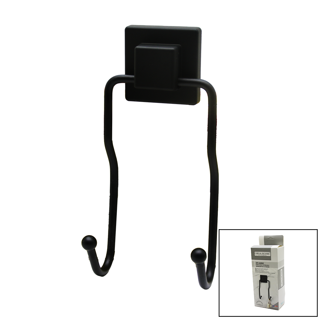SİYAH - 2Lİ METAL SARKIK ASKI KARE GÜÇLÜ YAPIŞKANLI 8X9X19CM (5293)