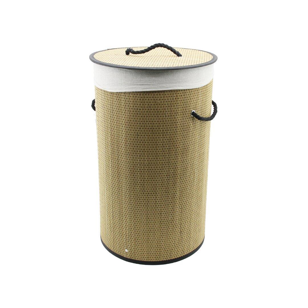 YUVARLAK HASIR - AHŞAP KİRLİ ÇAMAŞIR SEPETİ 37X60CM SEYYAR KAPAKLI İÇİ BEZLİ İP KULPLU (5293)